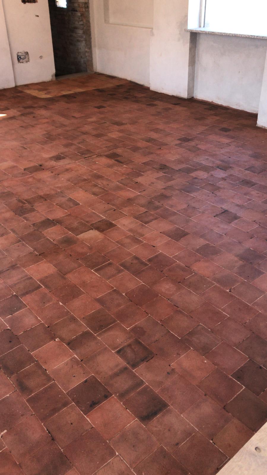 Il trattamento del cotto viene generalmente eseguito in due fasi principali. La prima fase prevede il lavaggio a fondo della superficie mediante l’utilizzo di una macchina monospazzola e aspiraliquidi. Poiché i pavimenti in cotto sono resistenti sia agli acidi tamponati che ai prodotti alcalini e deceranti, a seconda della situazione che andremo a trovare sarà possibile rimuovere macchie di diversa natura e residui dovuti a un precedente cantiere o trattamento.